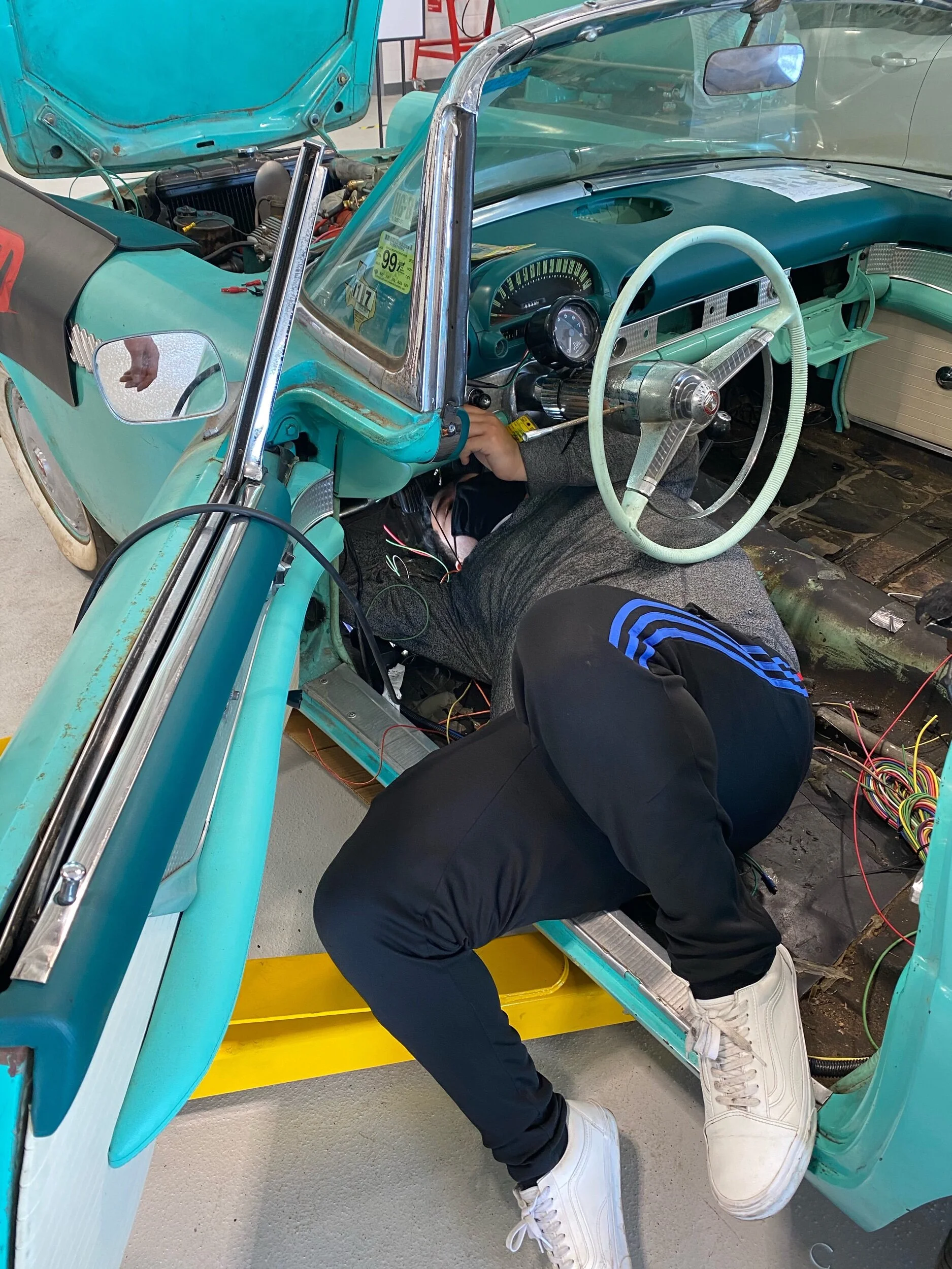 On October 12, 2022 six VTOH members drove their ‘55, ‘57, ‘62, ‘65, and two ‘66’s and visited the north HCC Automotive Technology Center. We sponsored an ice cream truck for the 75 students and faculty. The ‘55 project car is next due for the body shop during the Spring semester..
