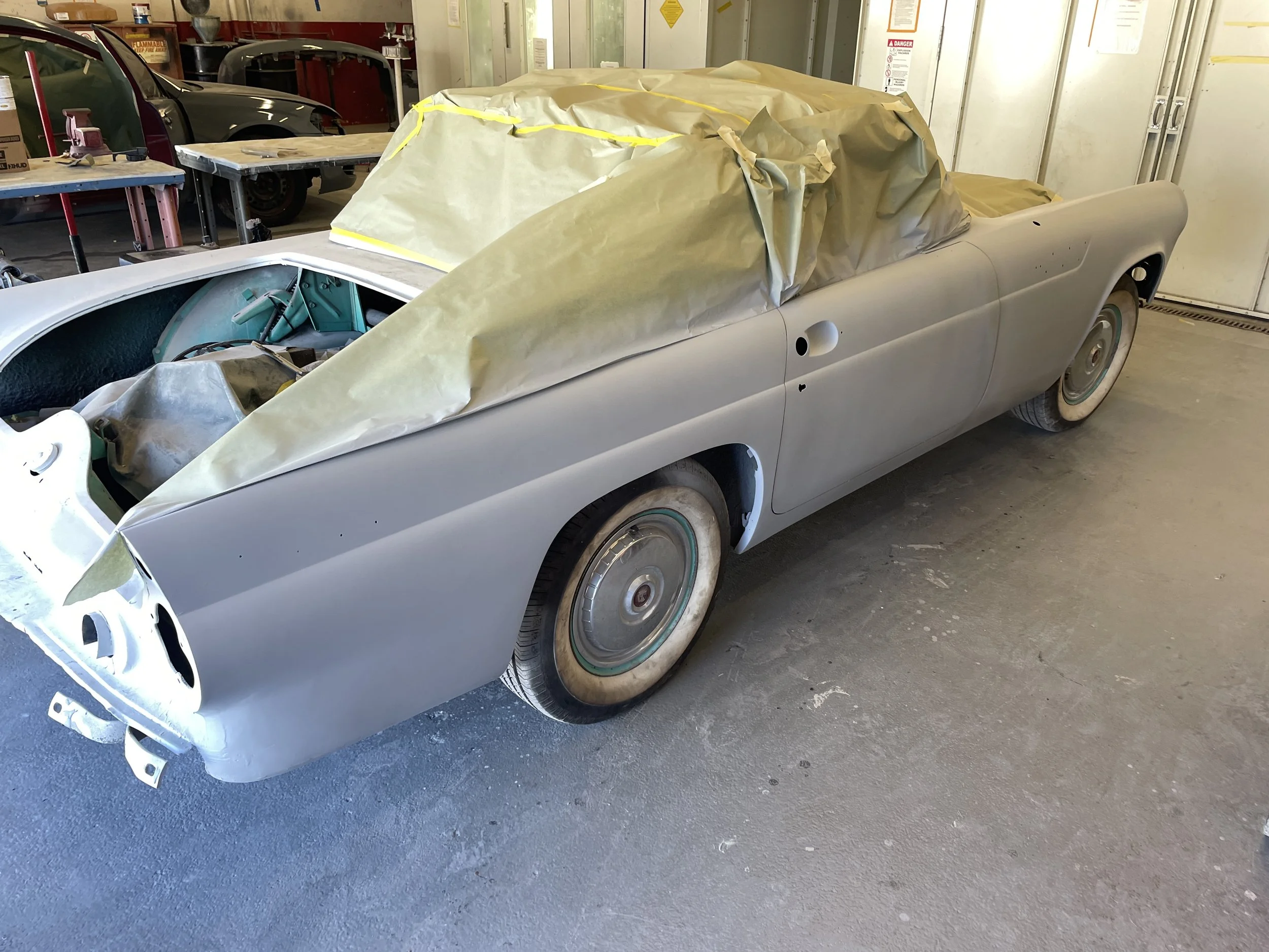 On March 6, 2024, the VTOH team had a conference with HCC instructors to discuss the next phase which was to be paint and body. HCC presented a budget and a schedule. VTOH provided funding to purchase primer, paint, and some miscellaneous materials. Not included was re-chrome of the bumpers (very expensive) or replacement of the cloth top. The decision was made to paint the chrome bumpers (almost no additional expense) giving it a more contemporary, slightly resto-mod look.